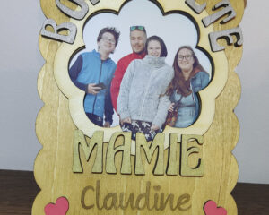 Sublimez vos souvenirs avec notre collection de cadre photo bois personnalisé et décorations murales personnalisées. Grâce à la précision de la découpe et gravure laser, nous transformons le bois en véritables pièces d’art : cadres pêle-mêle pour vos photos de famille ou cadres thématiques pour les amoureux des chiens. Chaque pièce est conçue dans notre atelier pour offrir un relief unique et une finition naturelle qui s’adapte à tous les intérieurs.