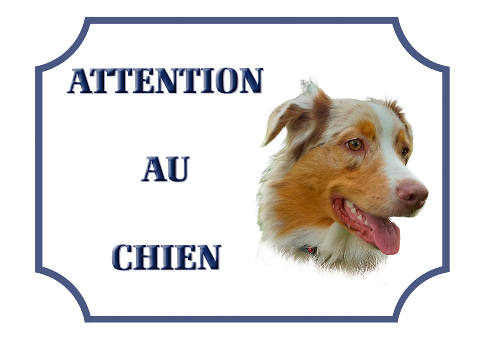 Plaque Berger Australien en aluminium durable. Elle sera idéale pour ajouter une touche unique et personnelle à votre maison et prévenir vos visiteurs de la présence de votre animal dans l’enceinte de votre propriété.