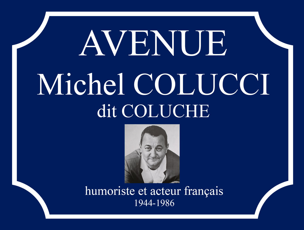 Plaque Métal « Avenue Coluche » – Décoration Murale en Aluminium