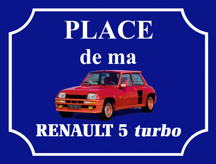 Plaque Métal « Place de ma Renault 5 Turbo » – Déco Murale Passion Automobile